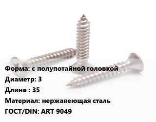 Саморез с полупотайной головкой D=3 L=35 нержавеющая сталь ГОСТ: ART 9049