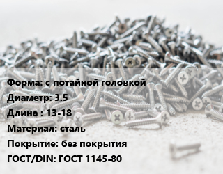 Шуруп с потайной головкой 3.5х13-18 сталь без покрытия ГОСТ: ГОСТ 1145-80