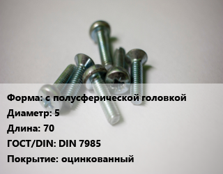 Винт с полусферической головкой 5х70 DIN 7985 оцинкованный, цена за 1000 шт,цена за шт, кг цена от 5.45 Тг / кг, где купить, условия доставки в Актобе и Актюбинской области