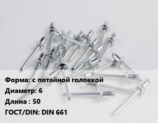 Заклепка с потайной головкой 6х50 ГОСТ: DIN 661