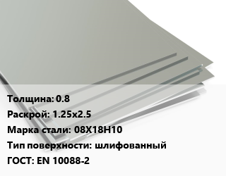 Лист нержавеющий 0.8 1.25х2.5 Сталь: 08Х18Н10 Тип:шлифованный EN 10088-2